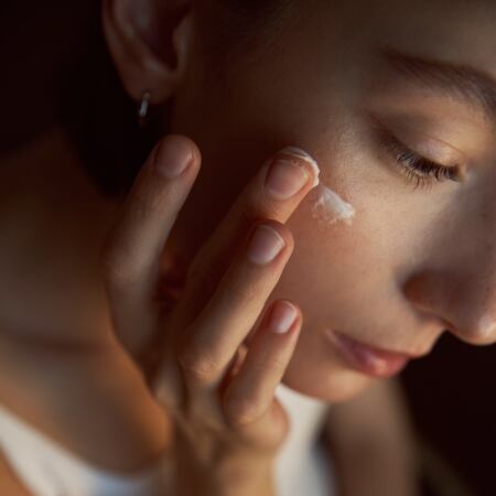化粧水やセラムで肌を整えたあとに、10円玉大のクリームを手に取り、肌全体に塗布します。